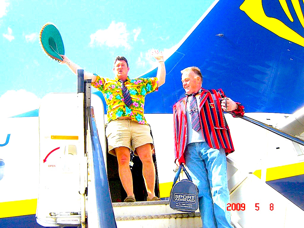 The Challice, Nosher, Reigate Mike, Broomy and Farmer Dave are in the vanguard as we spill into the terminal and out the other side, gusting into town like a giant red and black striped magic carpet on a giddy cloud of expectation.