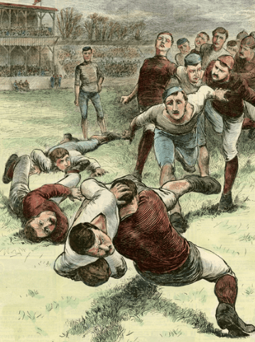 And on it goes. The Count’s been at the oxygen bottle again and runs the length of the pitch to score and we advance. A high ball bounces off The Juggler’s head and we retreat. Ginge downs an unfeasible amount of Guinness pre-match, we advance. Kinger twats the oppo’s imbecile No8 “because it had to happen sooner or later”, we retreat. Skip sneaks an oppo line-out, advance 10! Prop has the vapours, unexpectedly kicks away promising position, miss a go. Handy Andy unexpectedly passes to a support player, go for a lie down. Miss go. Oddjob gets seven swift jabs in on the cocky flanker, advance six.